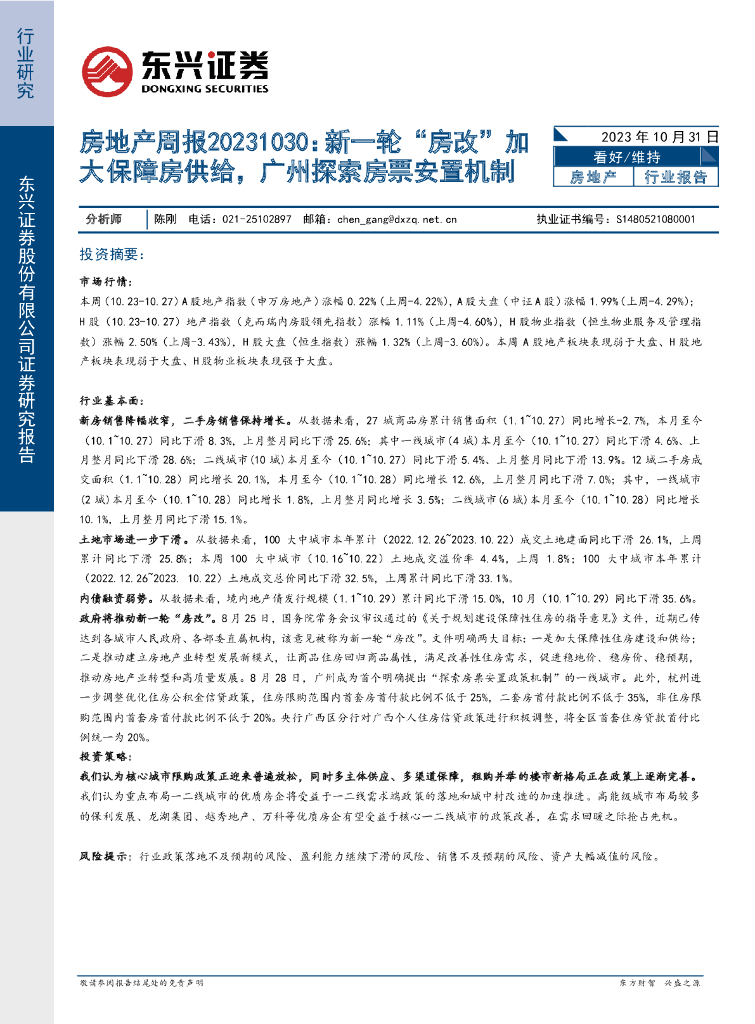 东兴证券:房地产周报:新一轮“房改”加大保障房供给,广州探索房票安置机制.pdf