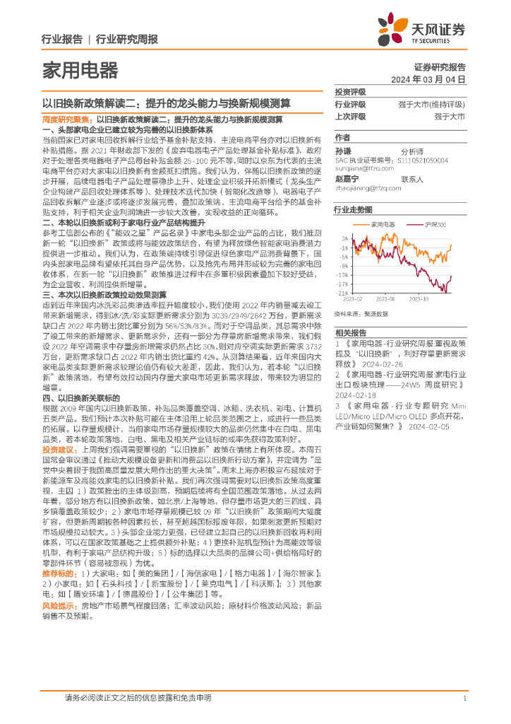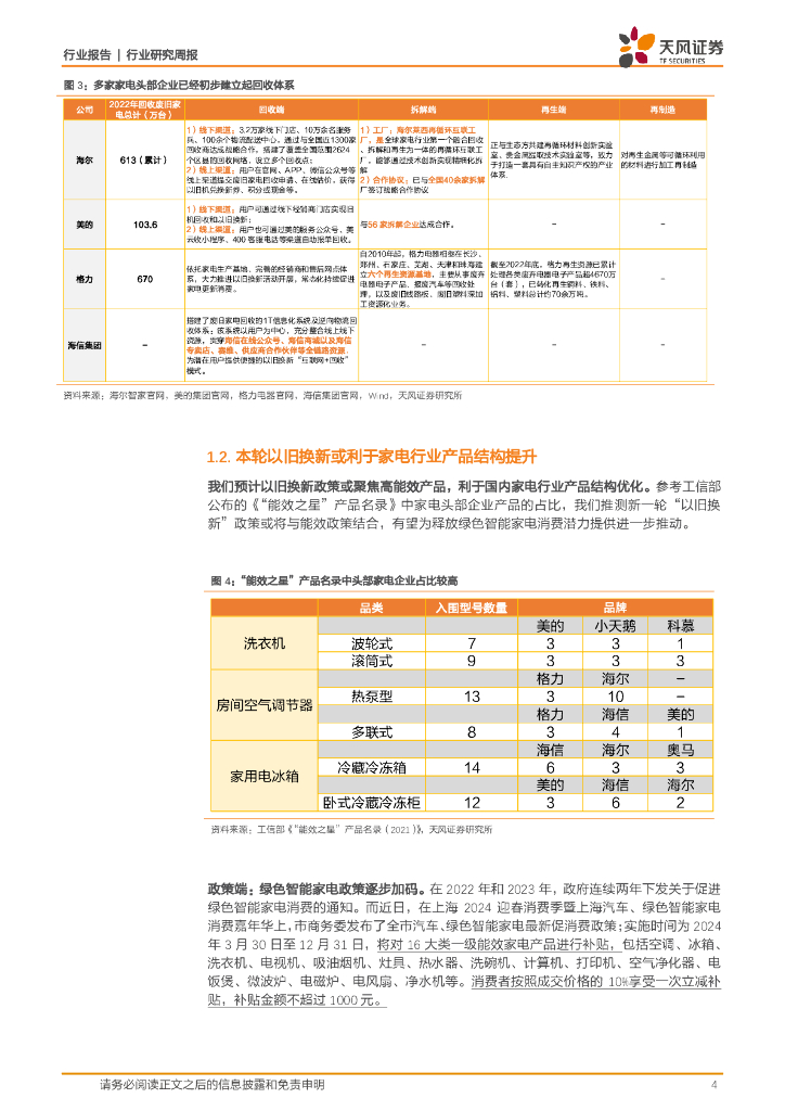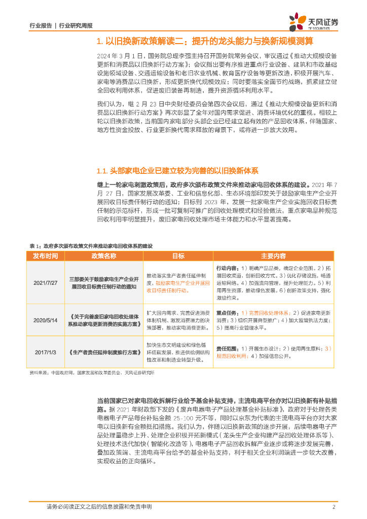 天风证券:家用电器行业研究周报:以旧换新政策解读二:提升的龙头能力与换新规模测算.pdf