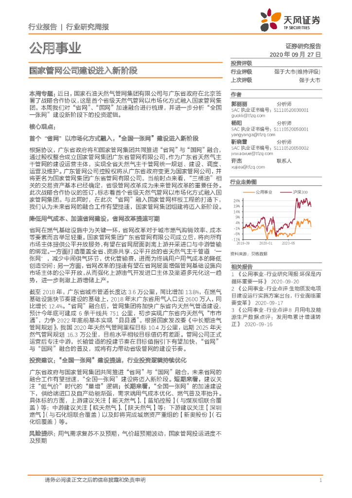 天风证券:公用事业行业研究周报:国家管网公司建设进入新阶段.pdf