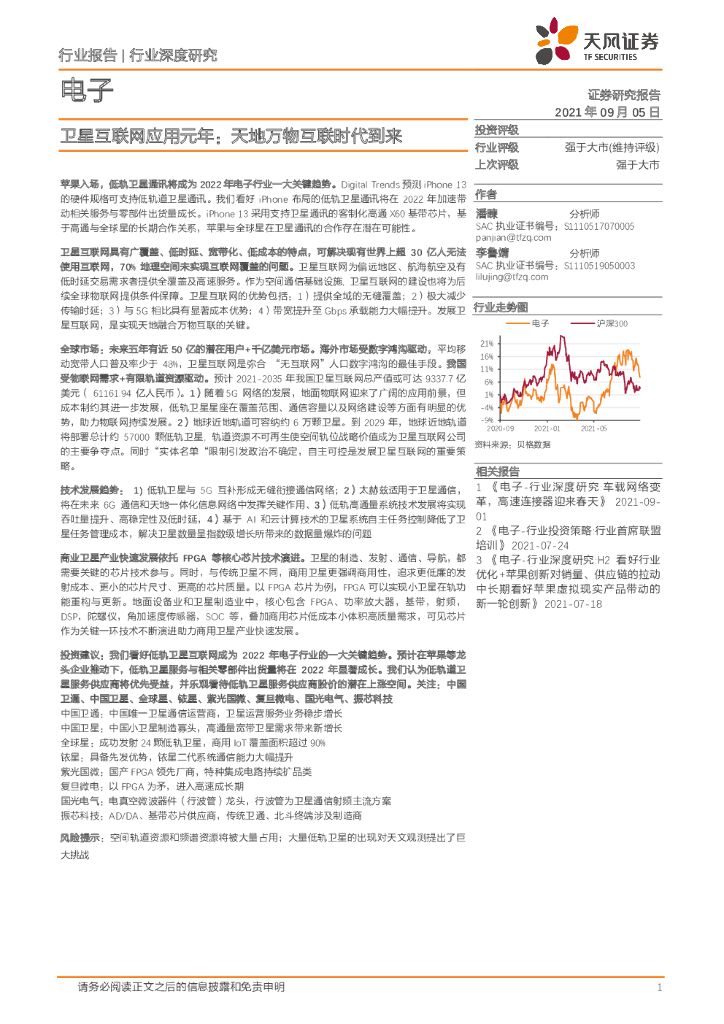 天风证券:电子行业深度研究:卫星互联网应用元年:天地万物互联时代到来.pdf