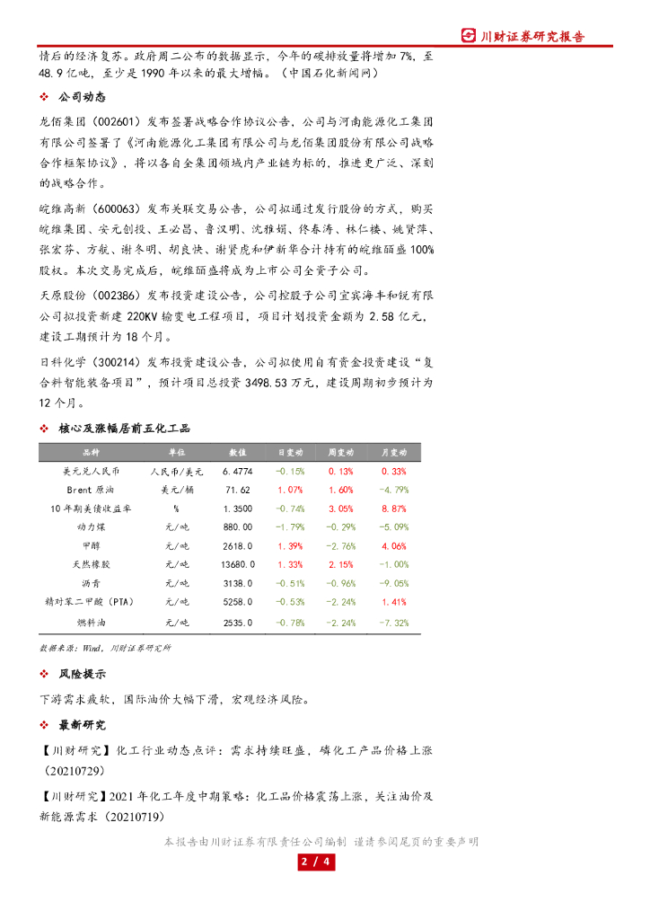 川财证券:化工行业日报:川财研究能源及公用事业产业链核心数据跟踪日报.pdf