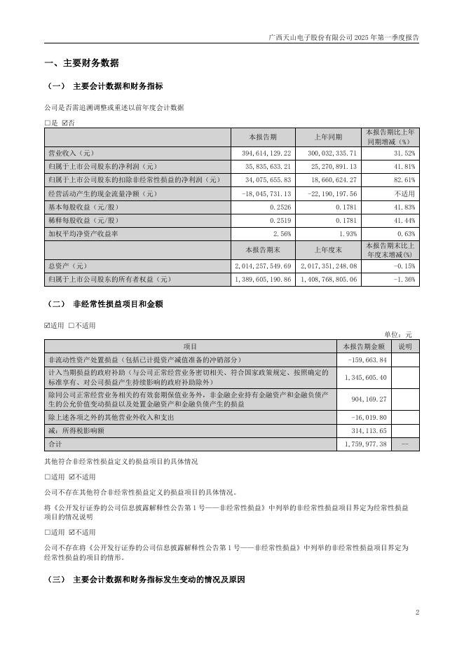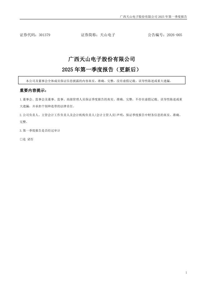 301379-天山电子:2025年第一季度报告(更新后).pdf