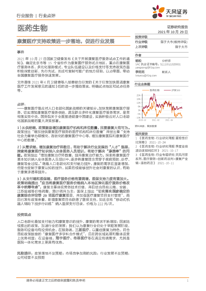 天风证券:医药生物:康复医疗支持政策进一步落地,促进行业发展.pdf