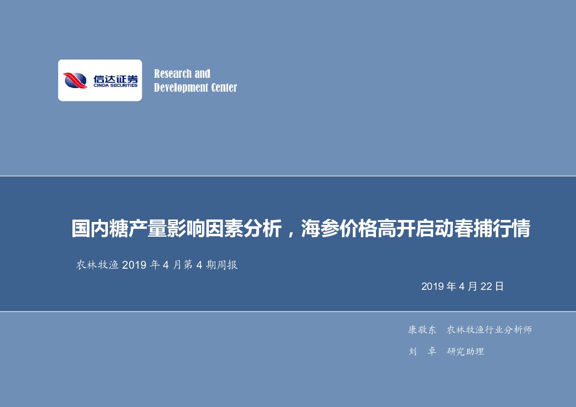 信达证券:农林牧渔2019年4月第4期周报:国内糖产量影响因素分析,海参价格高开启动春捕行情.pdf