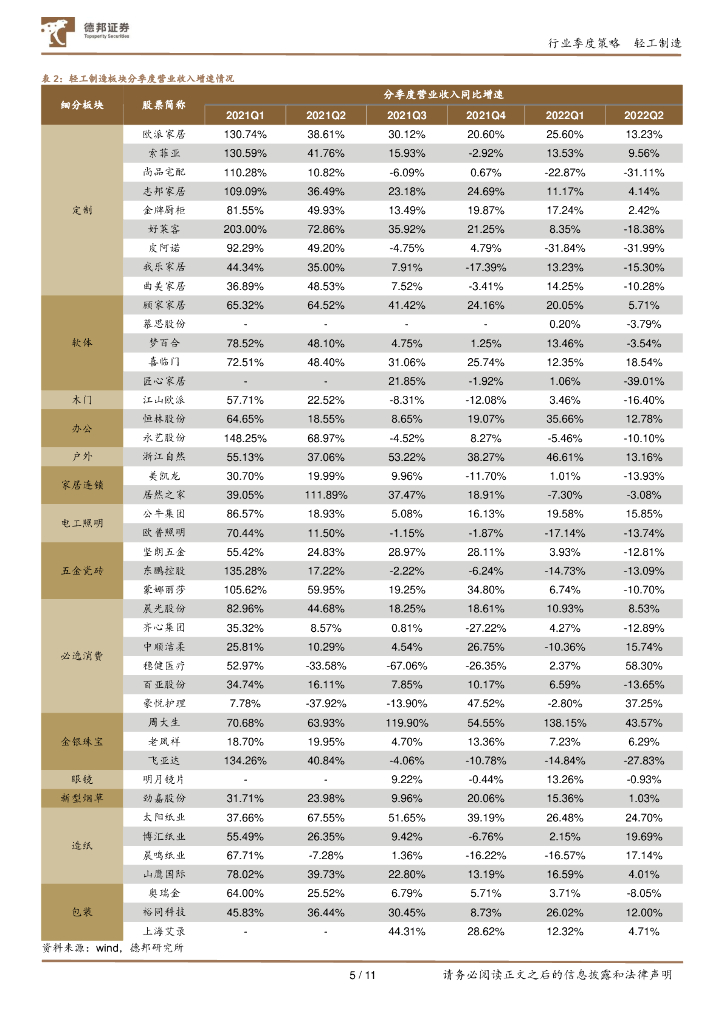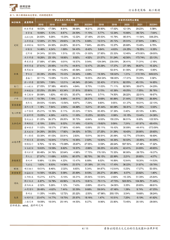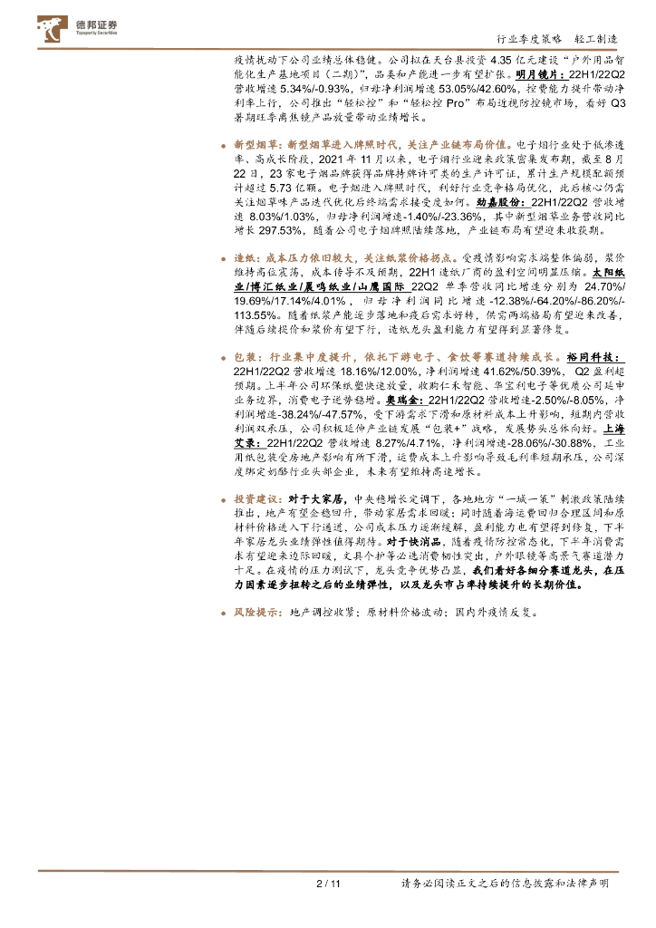 德邦证券:轻工制造行业2022半年报总结:龙头韧性强,关注盈利修复弹性.pdf