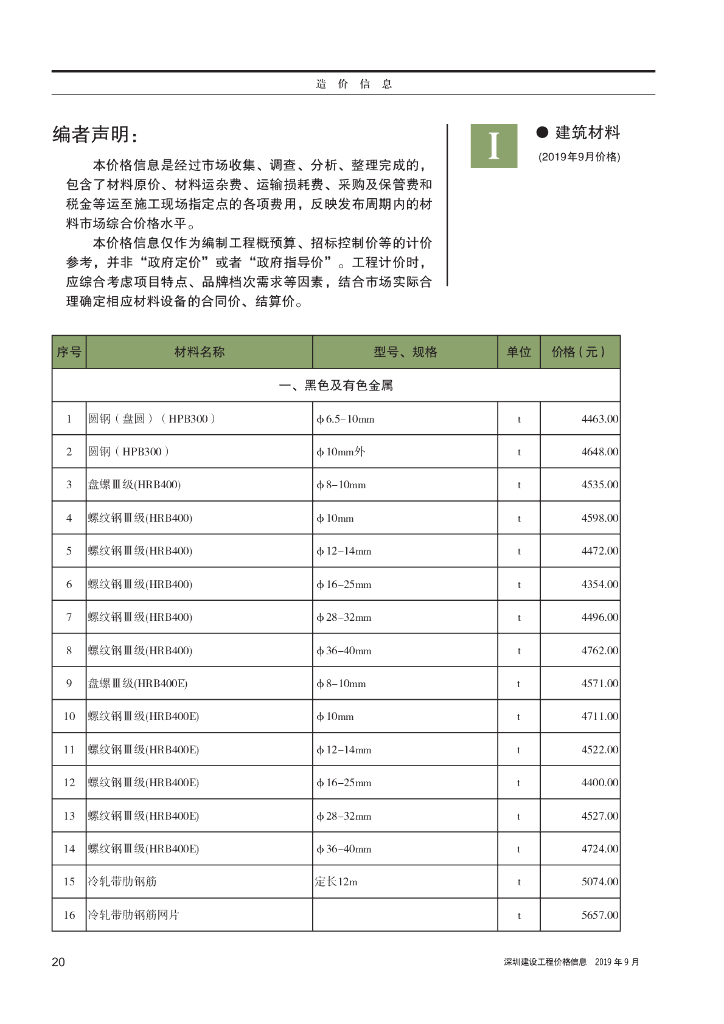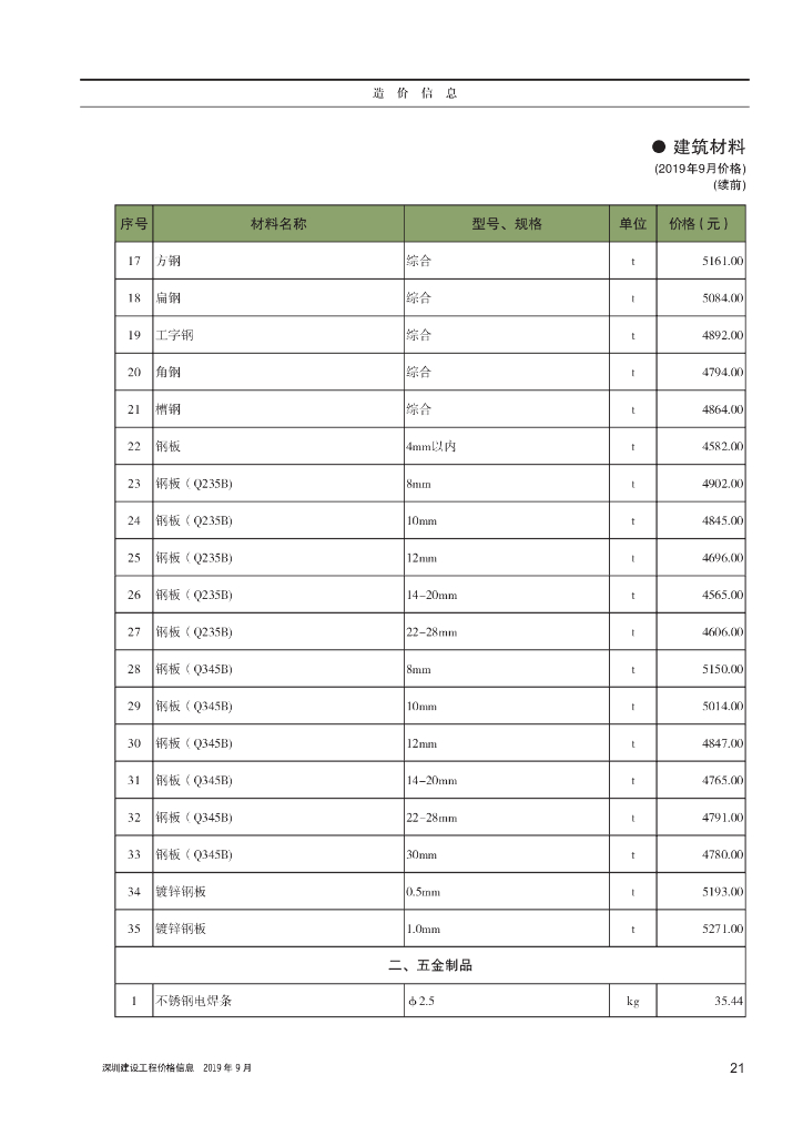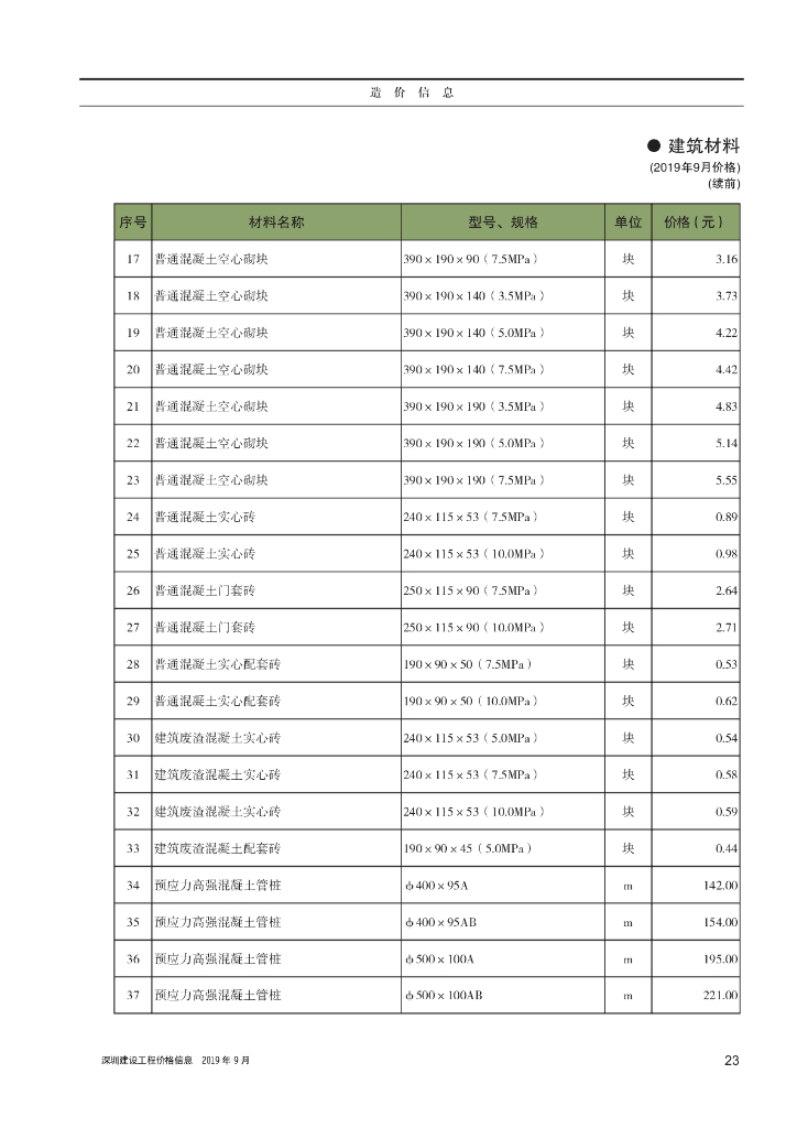 《深圳建设工程价格信息》2019年9月造价信息.pdf