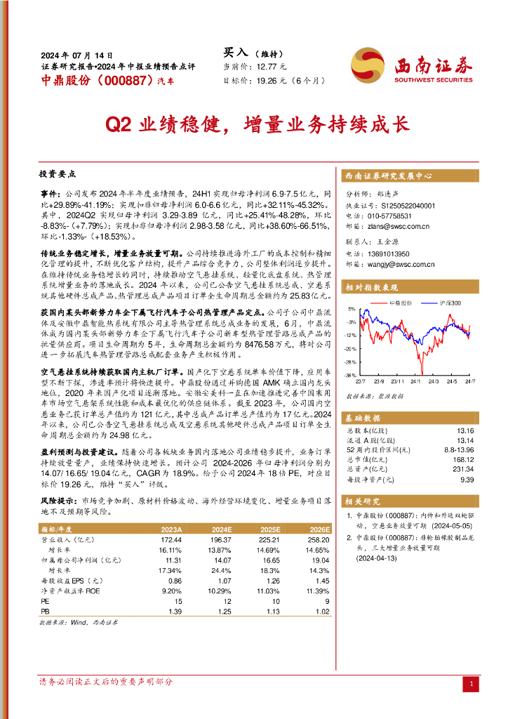 西南证券:中鼎股份(000887)-Q2业绩稳健,增量业务持续成长.pdf