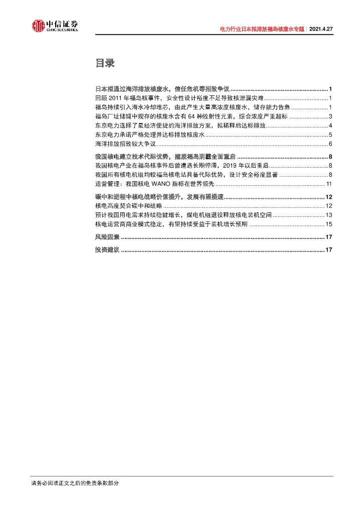 中信证券:电力行业日本拟排放福岛核废水专题-以代际优势摆脱福岛阴霾,发展核电助力碳中和.pdf