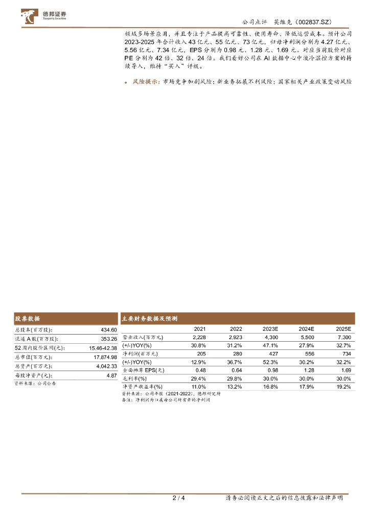 德邦证券:英维克(002837)-2022年报点评:国内AI数据中心温控核心厂商加速液冷布局.pdf