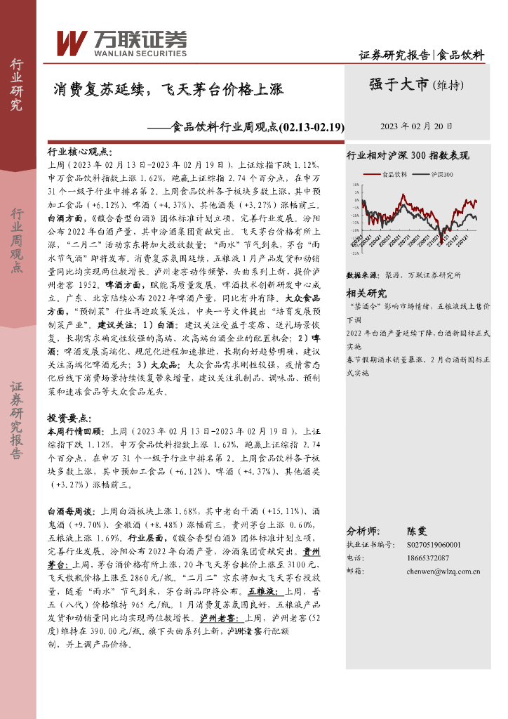 万联证券:食品饮料行业周观点:消费复苏延续,飞天茅台价格上涨.pdf