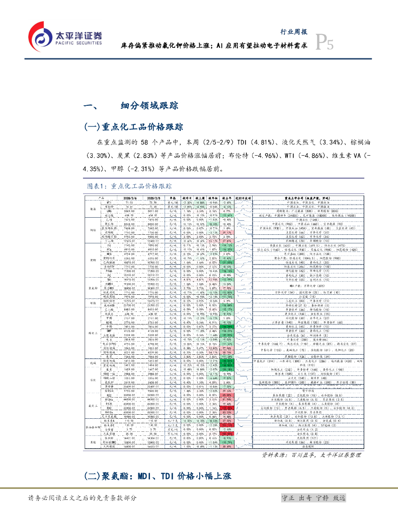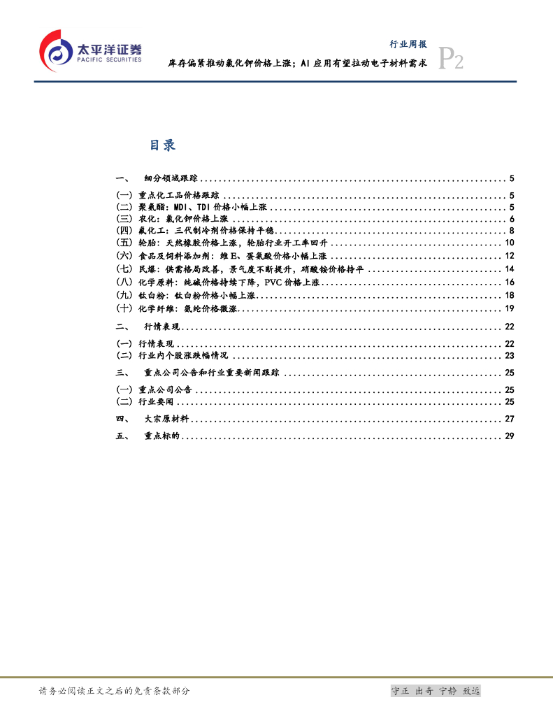 太平洋证券:化工行业周报:库存偏紧推动氯化钾价格上涨;AI应用有望拉动电子材料需求.pdf