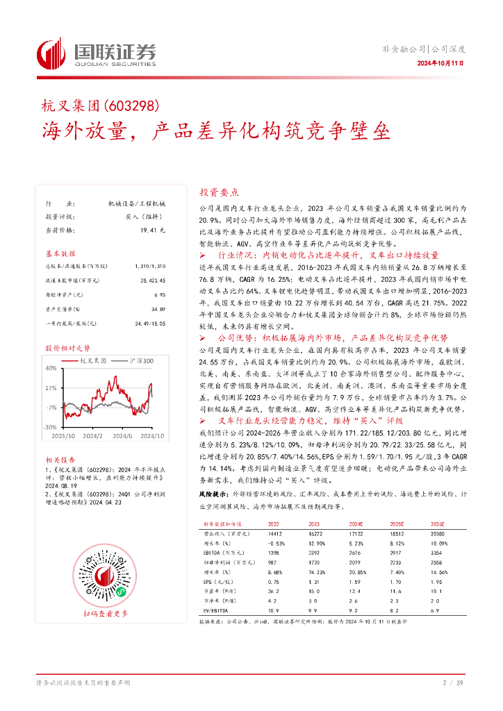 国联证券:杭叉集团(603298)-海外放量,产品差异化构筑竞争壁垒.pdf