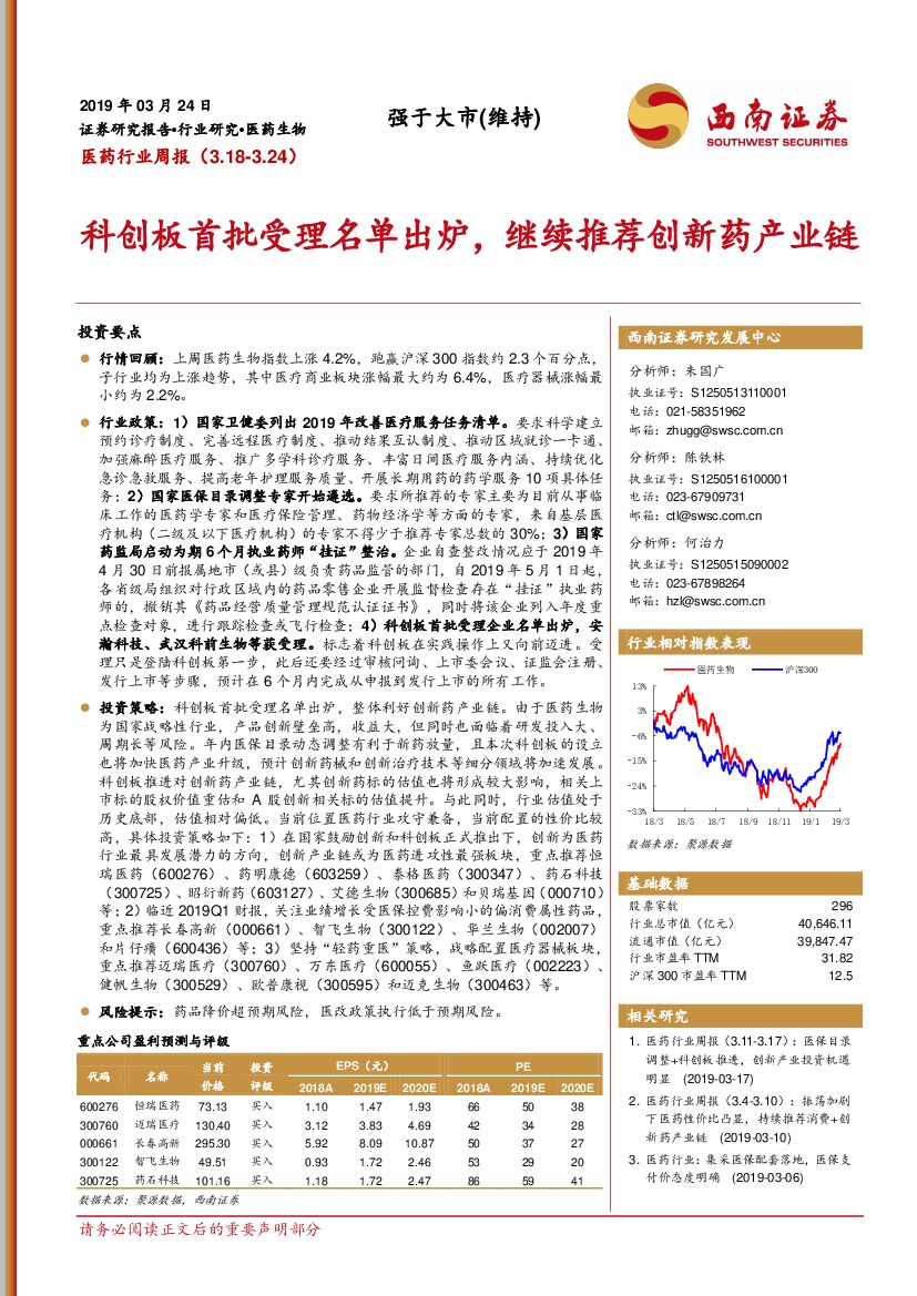西南证券:医药生物行业周报:科创板首批受理名单出炉,继续推荐创新药产业链.pdf