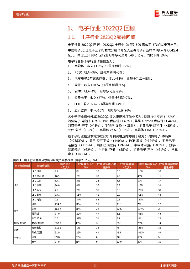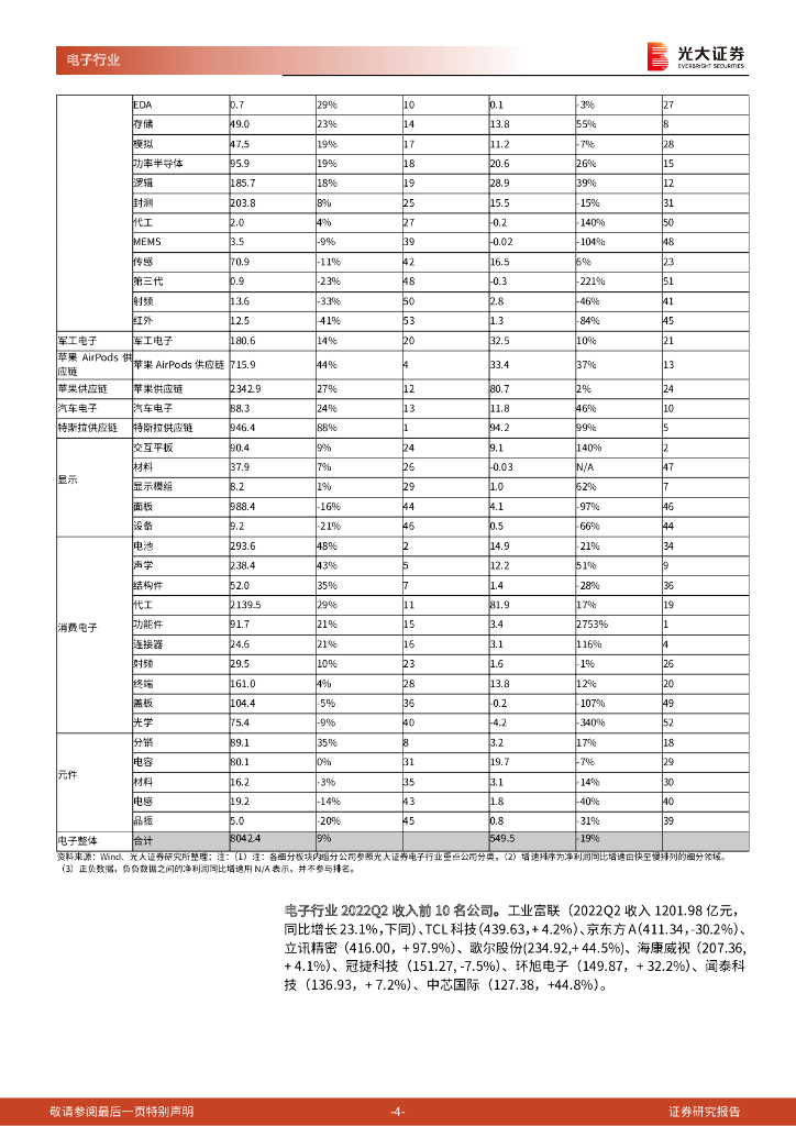 光大证券:电子行业2022年半年报与二季报总结:特斯拉供应链、半导体设备、汽车电子、EDA业绩表现亮眼.pdf