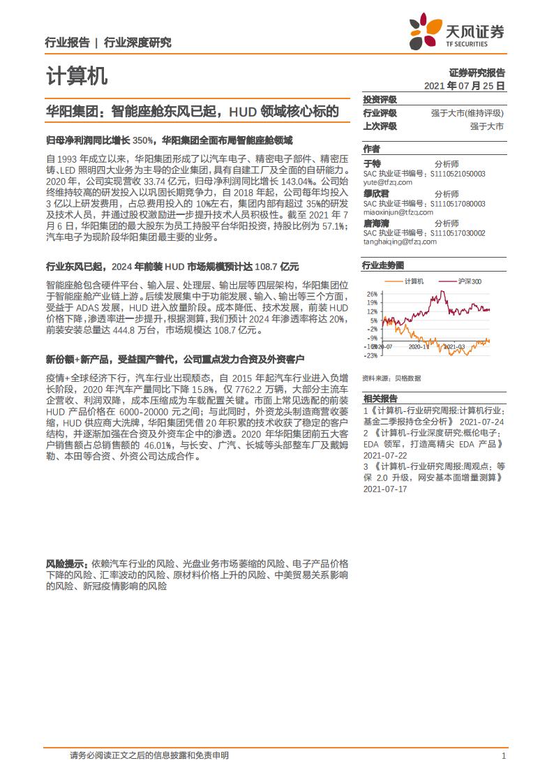 天风证券:计算机行业深度研究:华阳集团:智能座舱东风已起,HUD领域核心标的.pdf