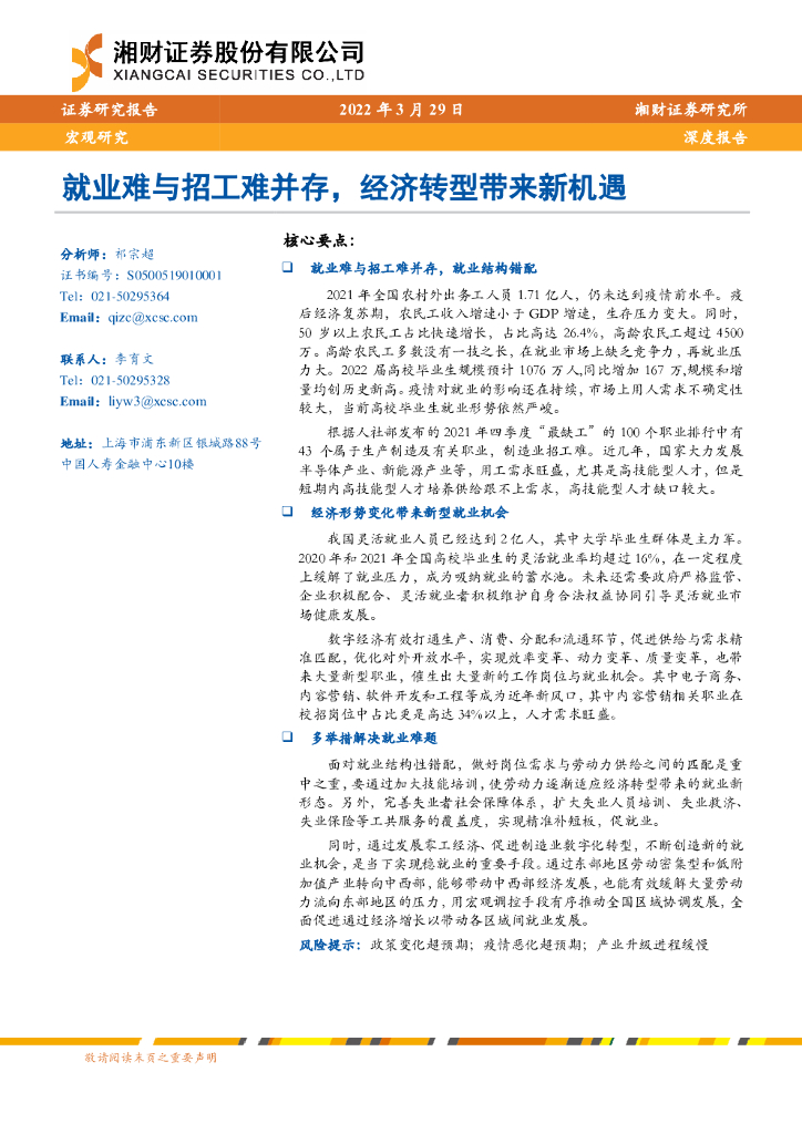 湘财证券:就业难与招工难并存,经济转型带来新机遇.pdf