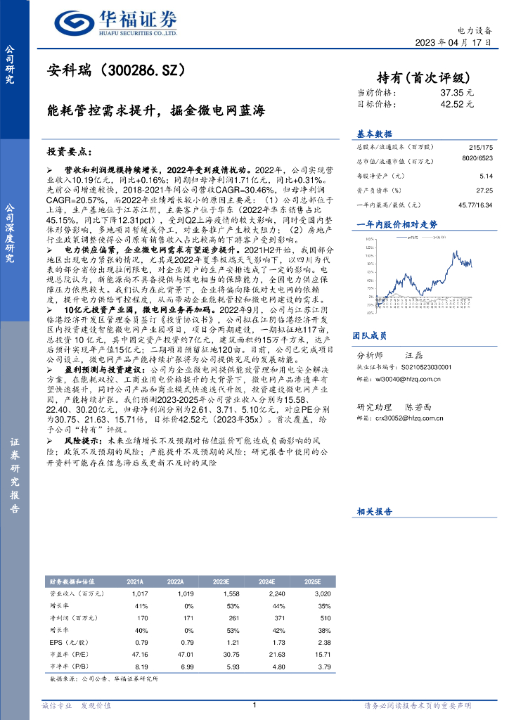 华福证券:安科瑞(300286)-能耗管控需求提升,掘金微电网蓝海.pdf