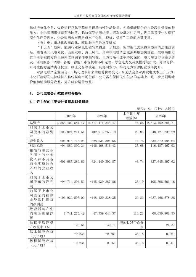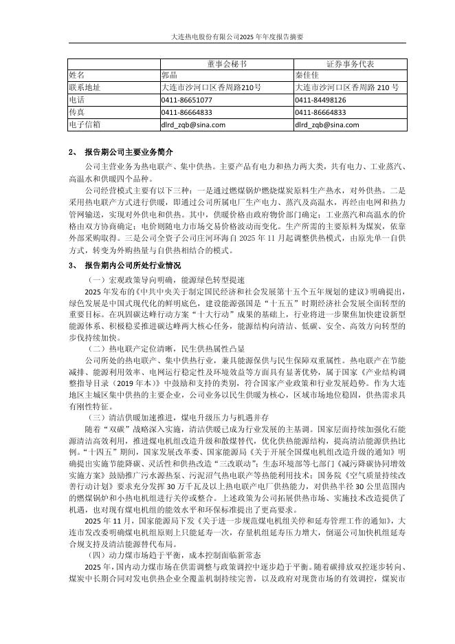 600719-大连热电:大连热电股份有限公司2025年年度报告摘要.pdf