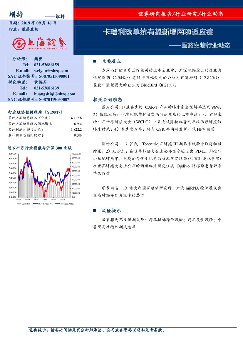 上海证券:医药生物行业动态:卡瑞利珠单抗有望新增两项适应症.pdf