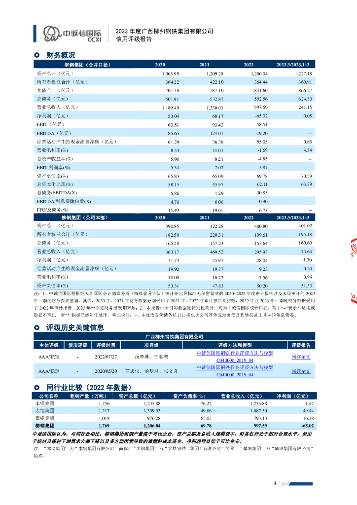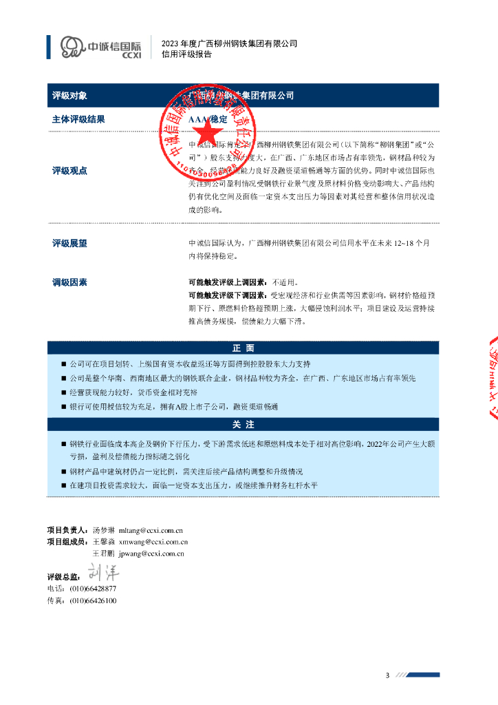 中诚信:2023年度广西柳州钢铁集团有限公司信用评级报告.pdf