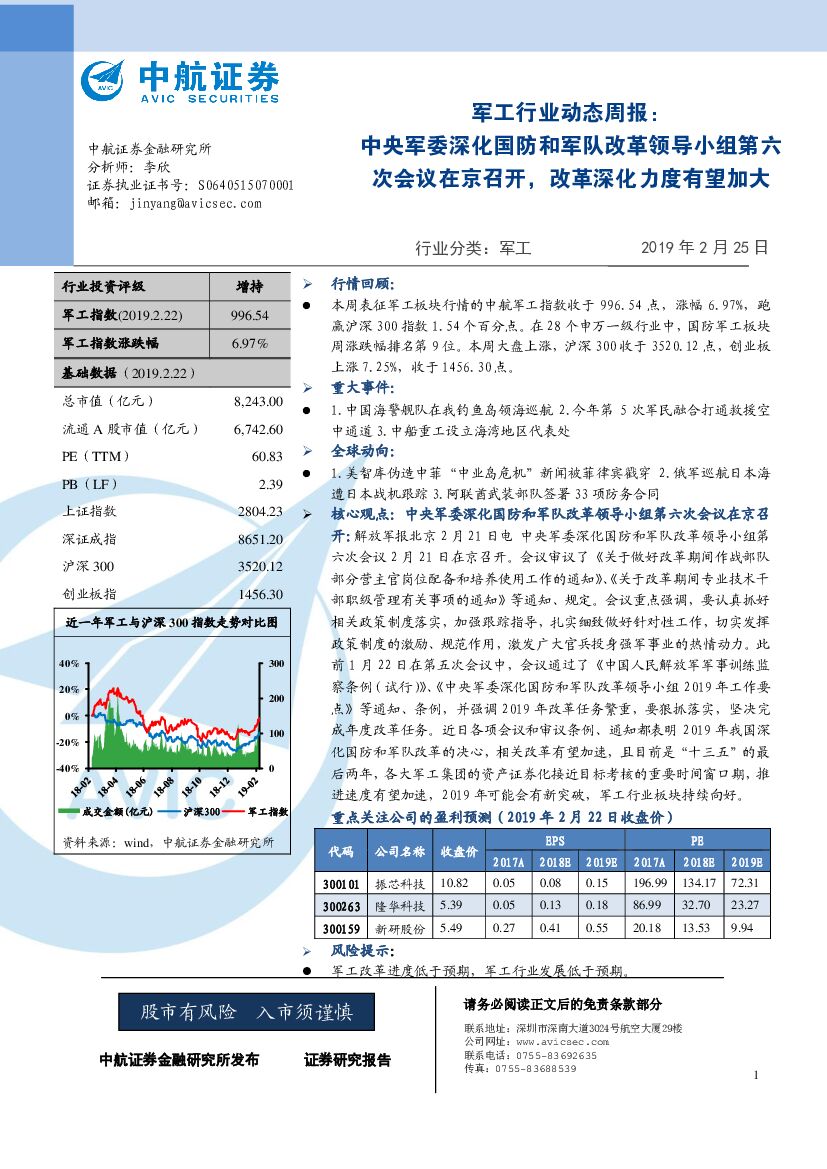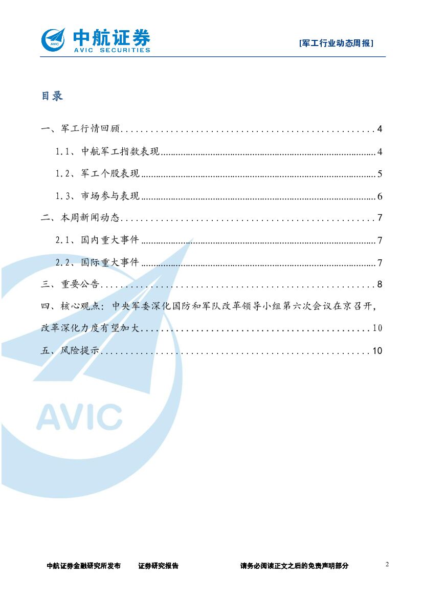 中航证券:军工行业动态周报:中央军委深化国防和军队改革领导小组第六次会议在京召开,改革深化力度有望加大.pdf