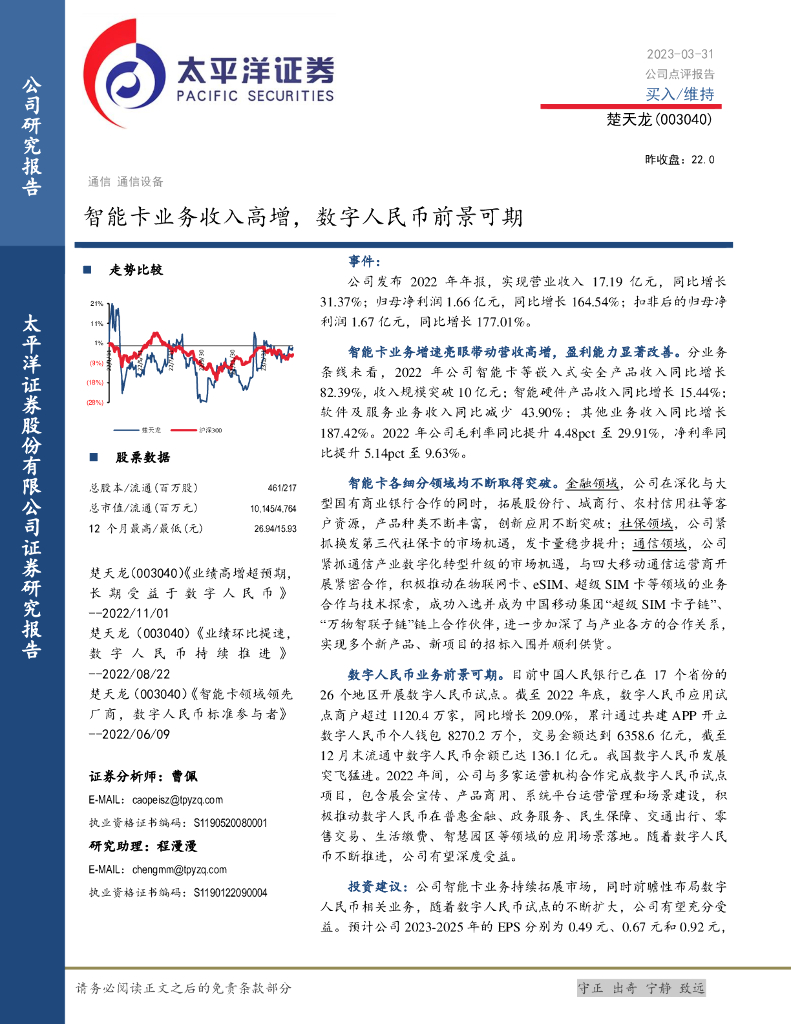 太平洋证券:楚天龙(003040)-智能卡业务收入高增,数字人民币前景可期.pdf