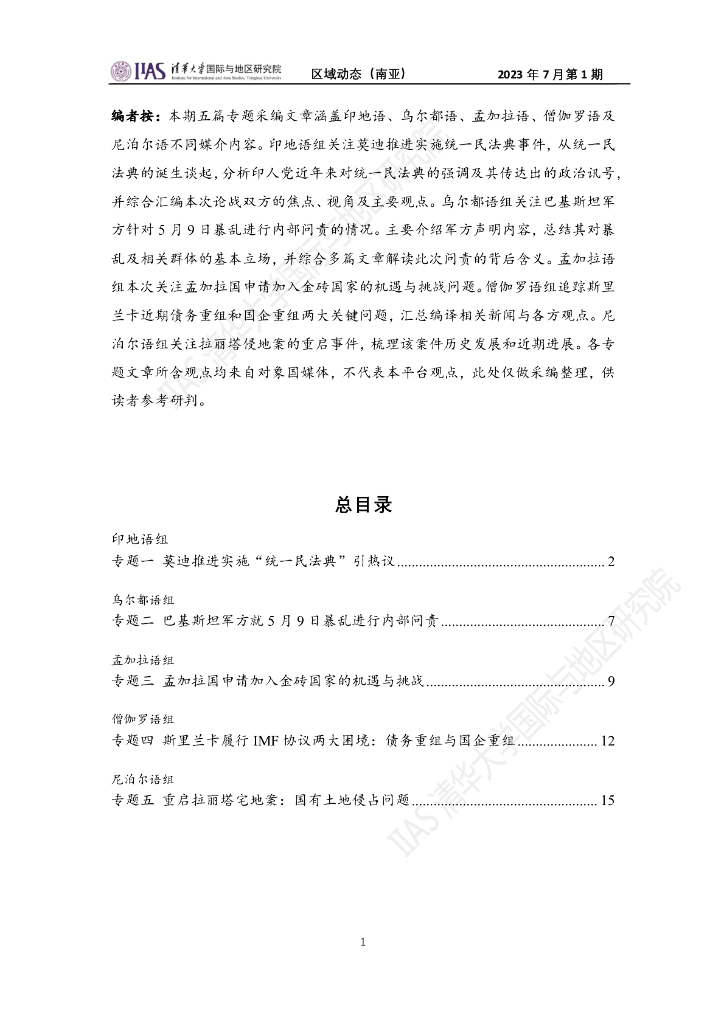 清华大学国际与地区研究院:南亚地区《区域动态》2023年7月第1期.pdf