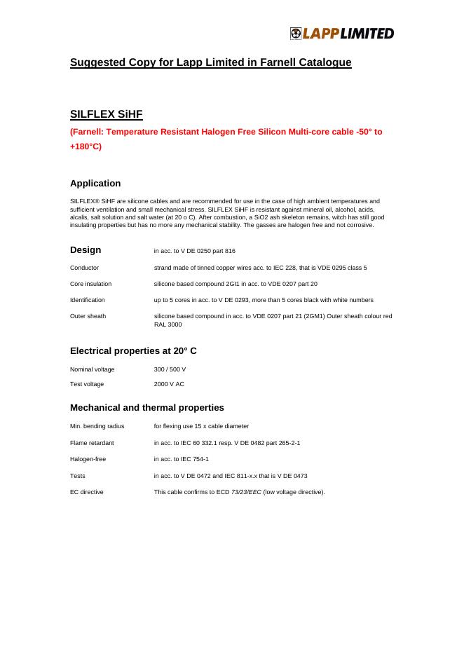 LAPP KABEL Suggested Copy for Lapp Limited in Farnell Catalogue 数据手册.pdf