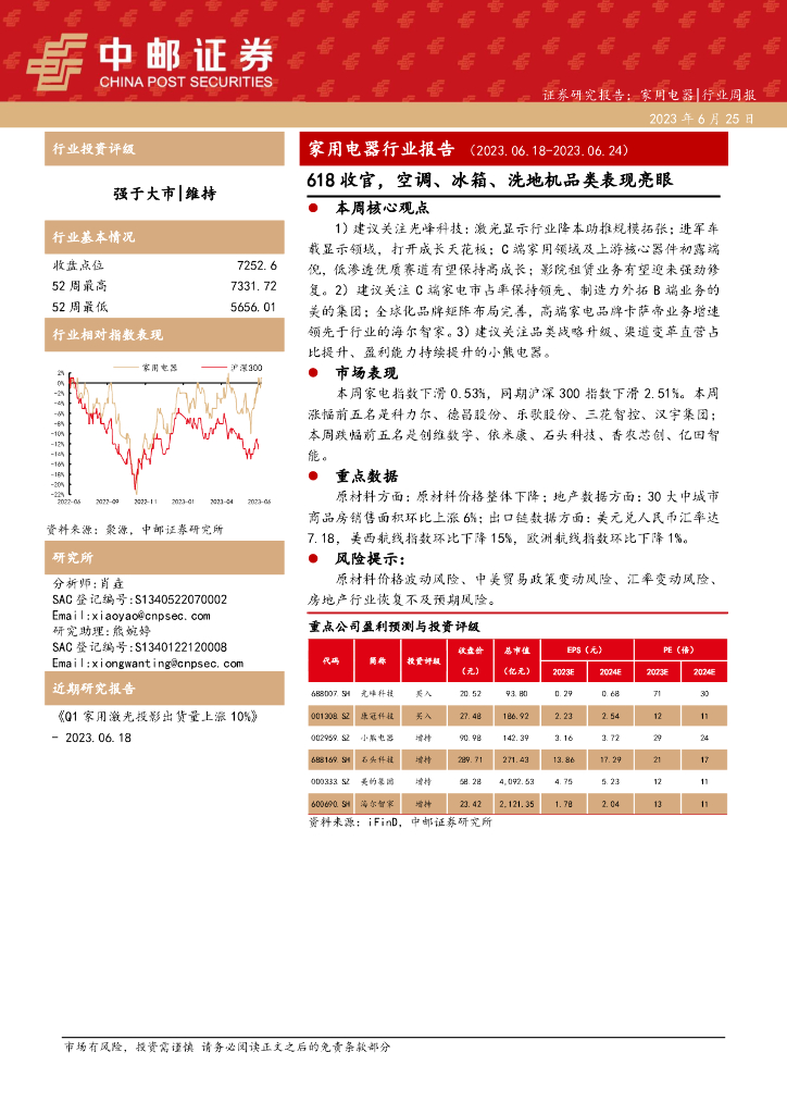 中邮证券:家用电器行业周报:618收官,空调、冰箱、洗地机品类表现亮眼.pdf