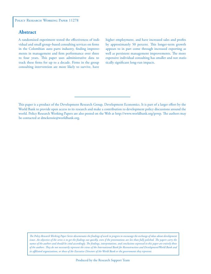 世界银行:十年后,集团咨询继续使企业受益:来自哥伦比亚汽车零部件公司的实验证据(英文版).pdf