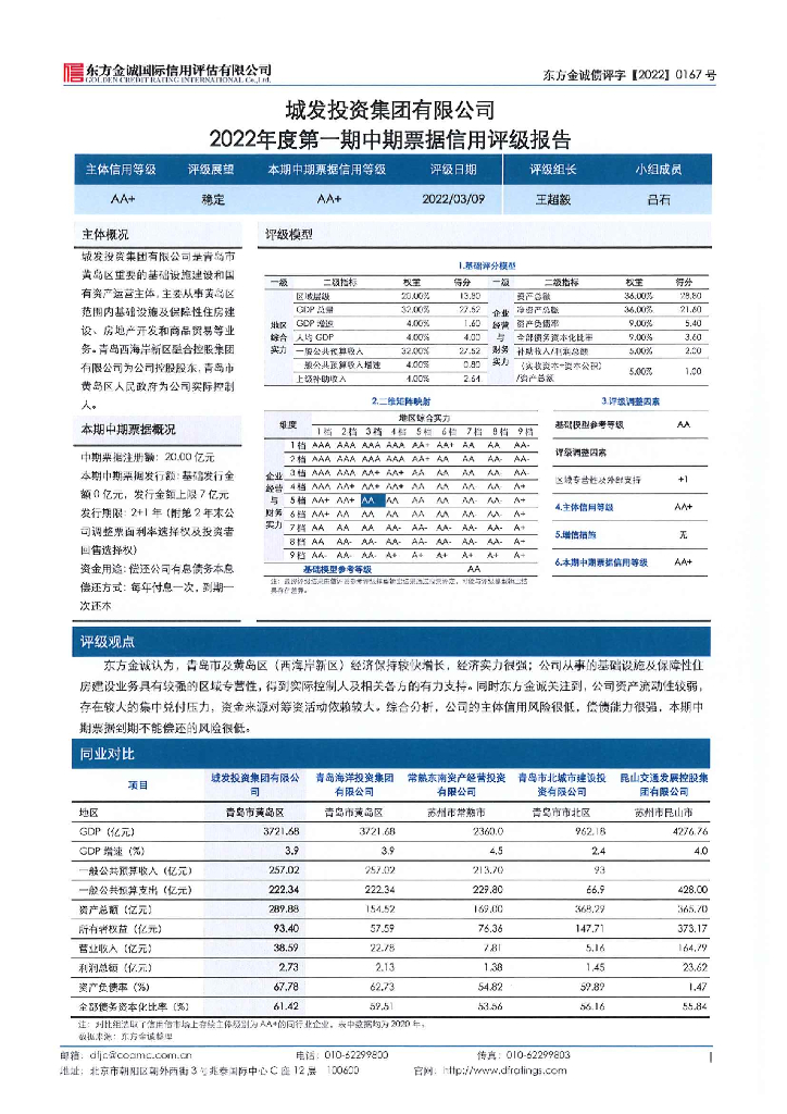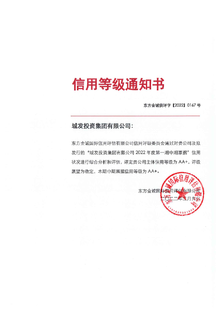 东方金诚:城发投资集团有限公司2022年度第一期中期票据评级报告.pdf