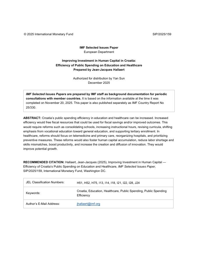 国际货币基金组织:改善克罗地亚人力资本投资:教育和医疗公共支出的效率(英文版).pdf