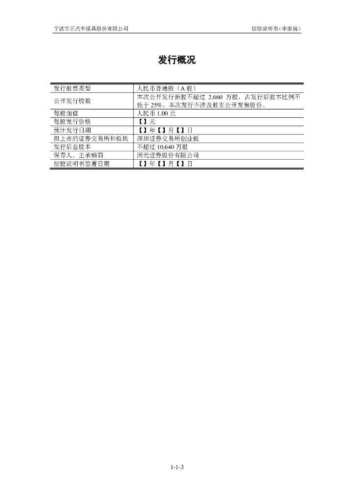 宁波方正汽车模具股份有限公司深交所创业板IPO上市招股说明书.pdf