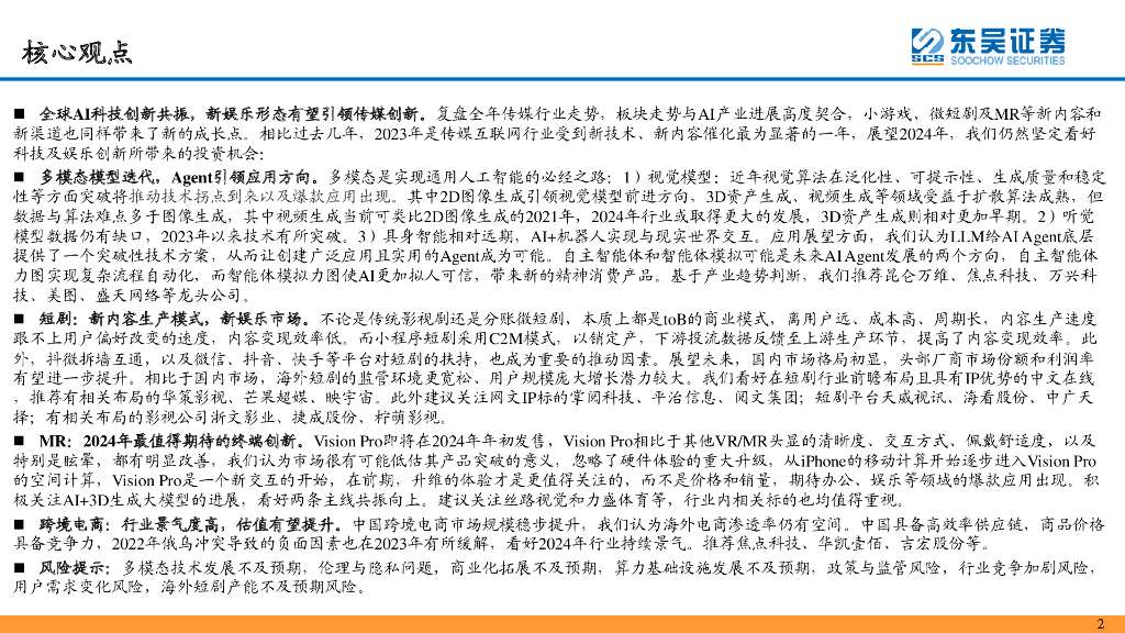 东吴证券:2024年传媒互联网行业策略:“智”胜未来,曙光初现.pdf