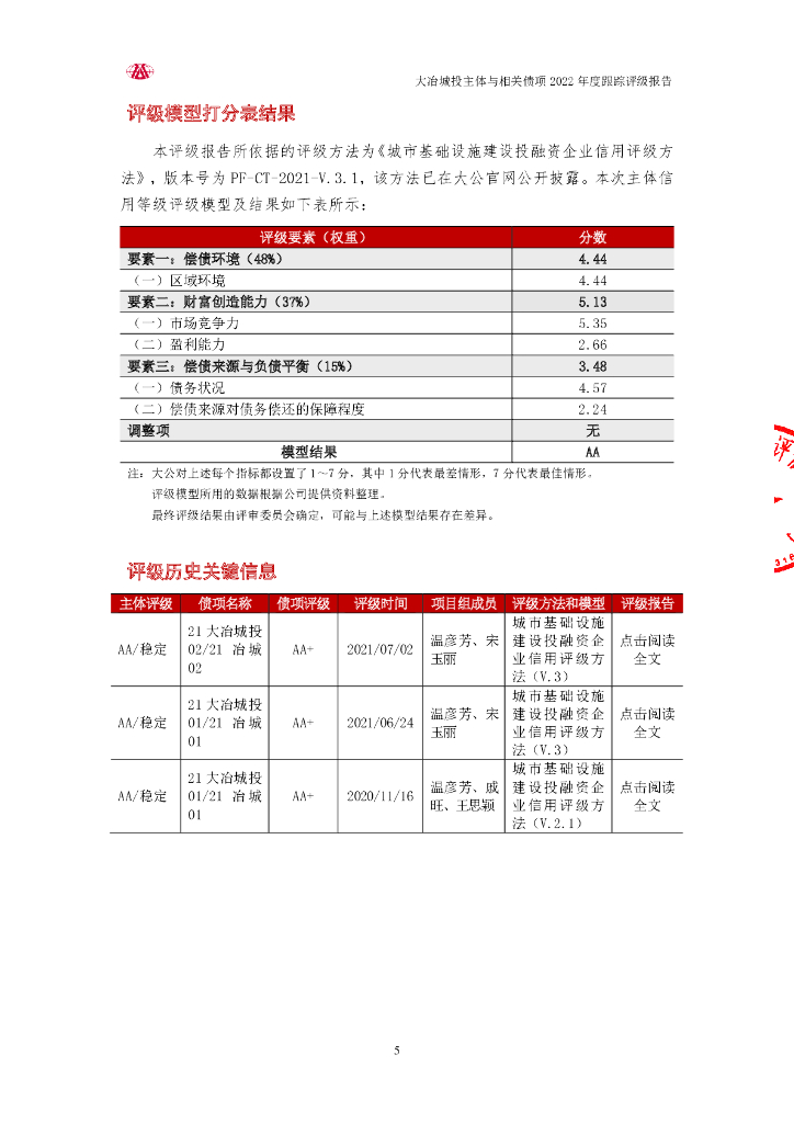 大公:大冶市振恒城市发展投资有限公司主体与相关债项2022年度跟踪评级报告.pdf