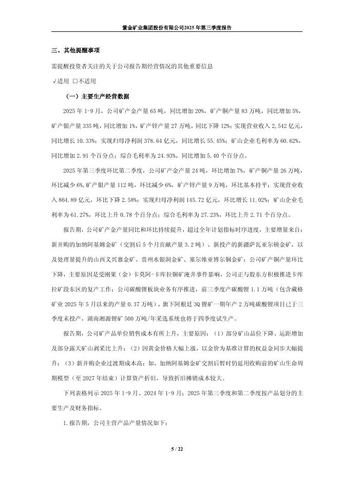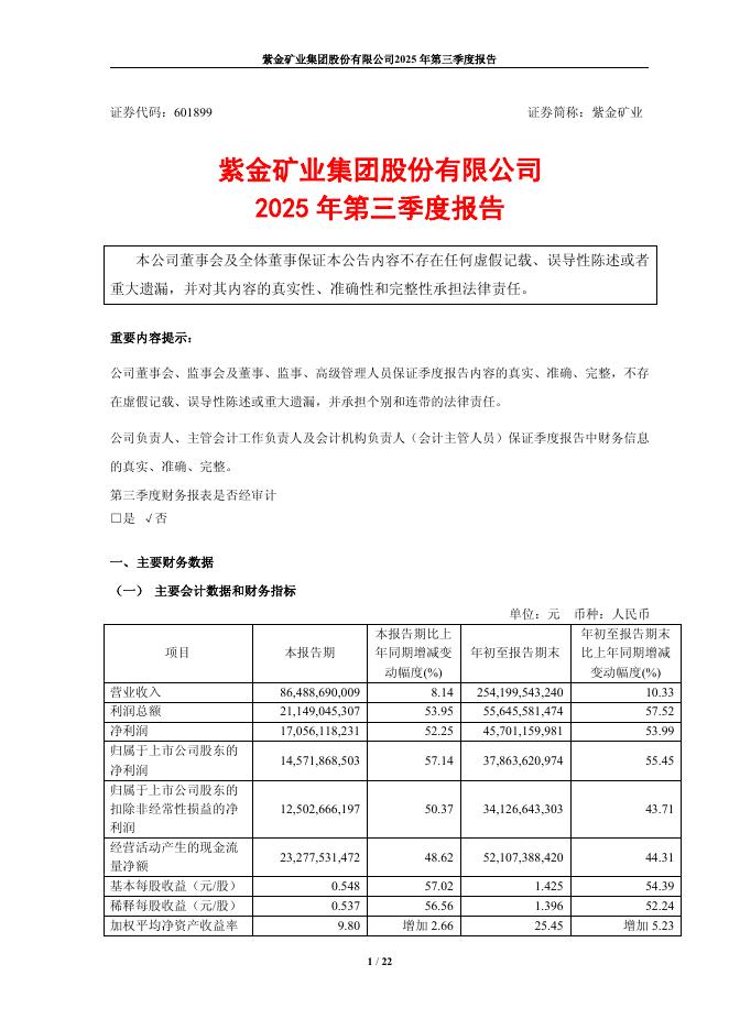 601899-紫金矿业:紫金矿业集团股份有限公司2025年第三季度报告.pdf