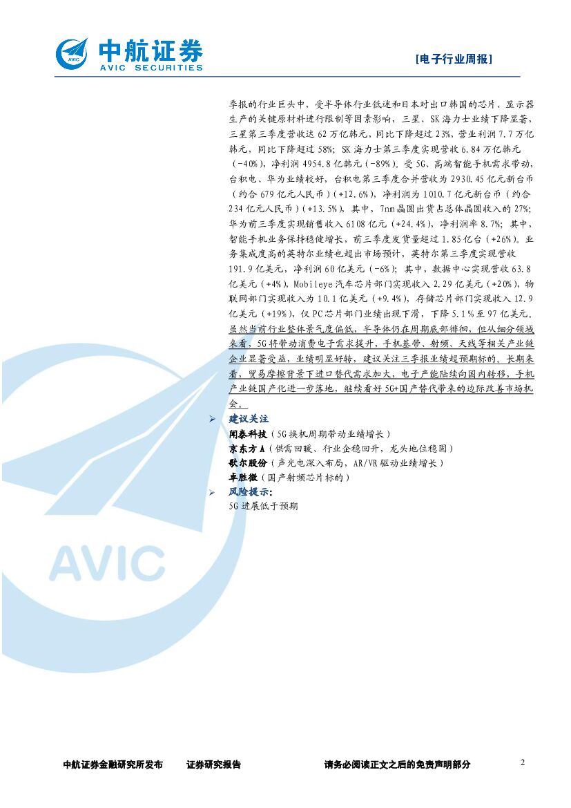中航证券:电子行业周报:三季报陆续发布,关注业绩超预期标的.pdf