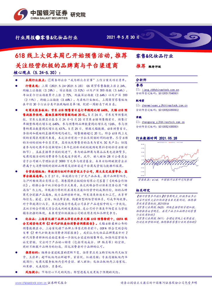 中国银河:零售&化妆品行业周报:618线上大促本周已开始预售活动,推荐关注经营积极的品牌商与平台渠道商.pdf