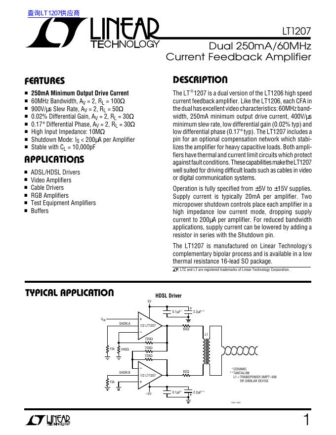 LINEAR TECHNOLOGY - LT1173 Micropower DC/DC Converter Adjustable and Fixed 5V, 12V 说明书