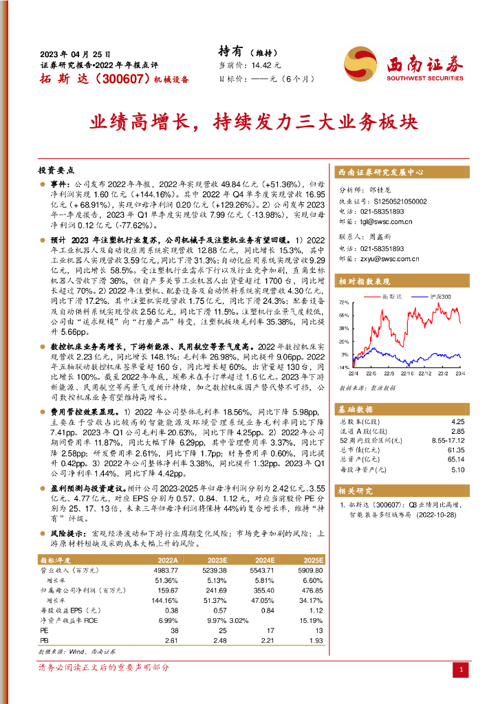 西南证券:拓斯达(300607)-业绩高增长,持续发力三大业务板块.pdf
