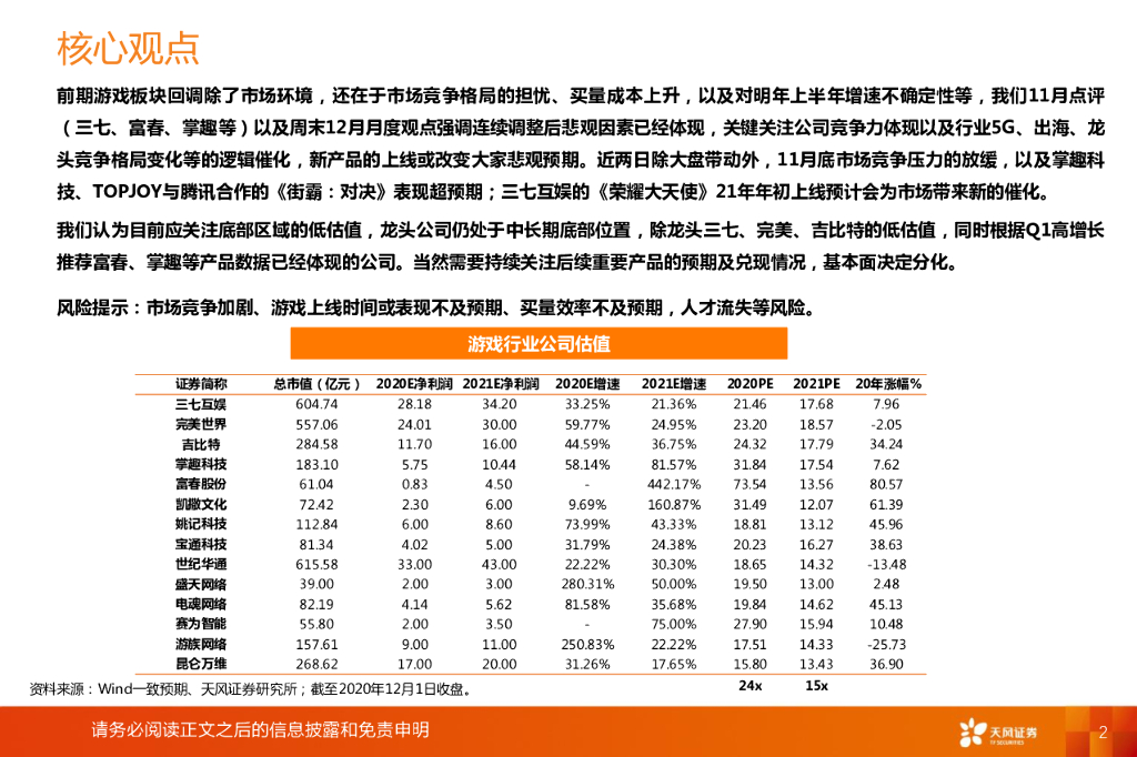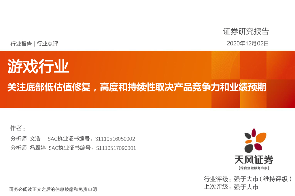 天风证券:游戏行业:关注底部低估值修复,高度和持续性取决产品竞争力和业绩预期.pdf