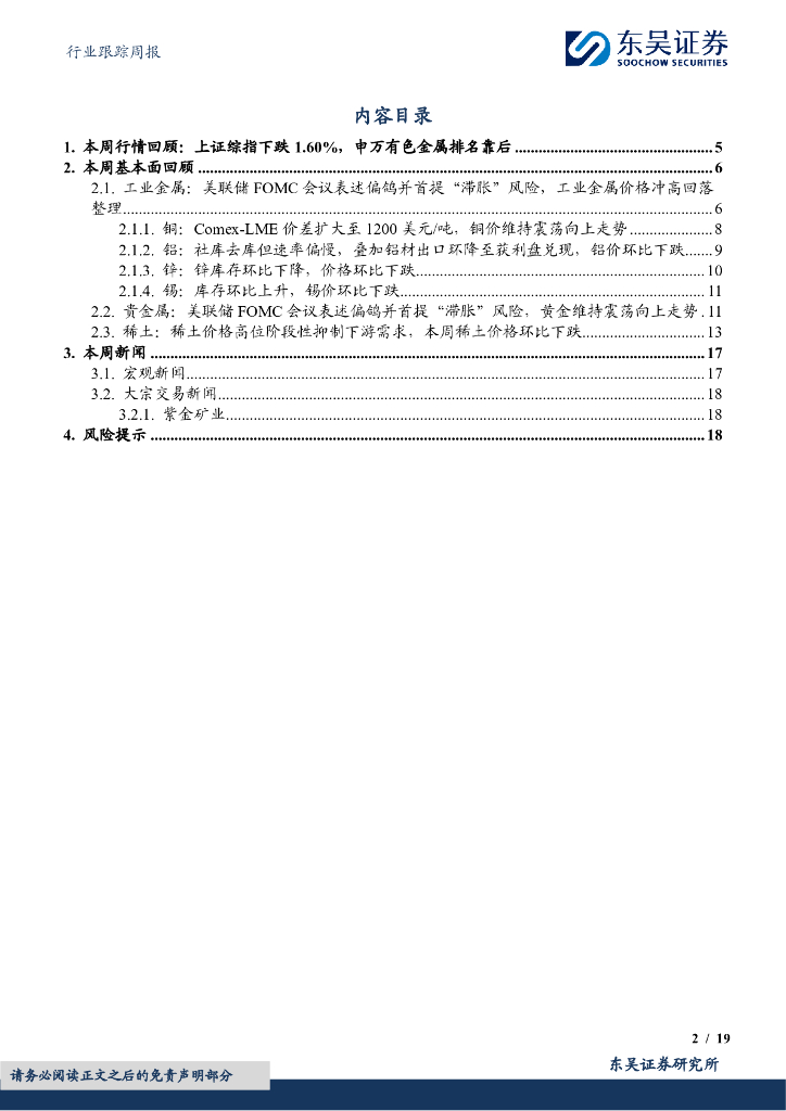 东吴证券:有色金属行业跟踪周报:美联储FOMC会议表述偏鸽并首提“滞胀”风险,有色金属价格冲高回落整理.pdf