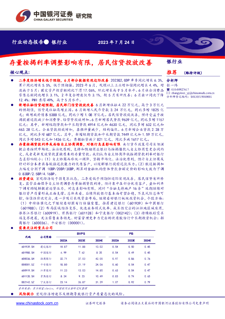 中国银河:银行业行业动态报告:存量按揭利率调整影响有限,居民信贷投放改善.pdf