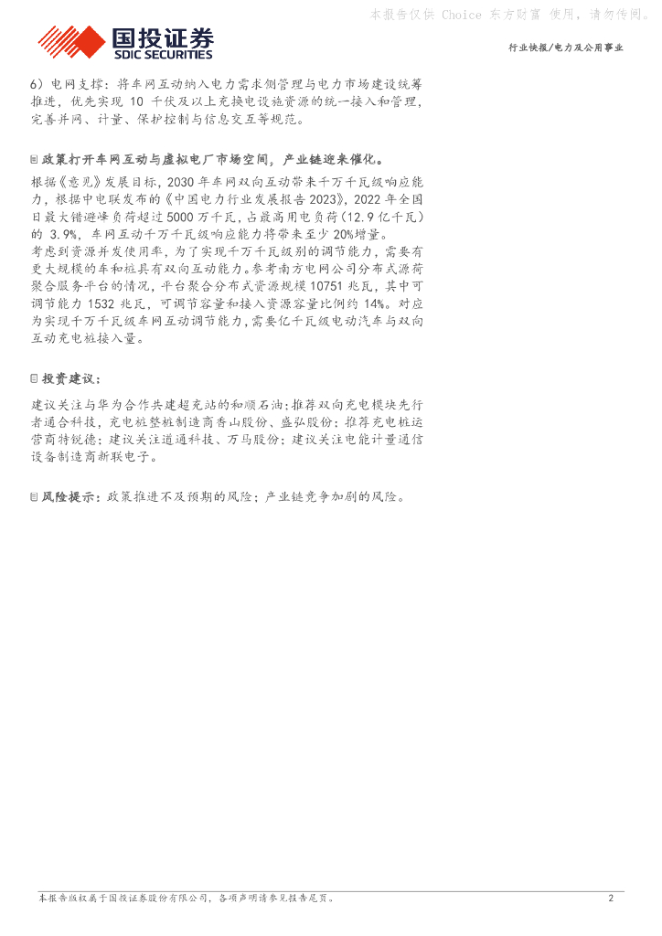 国投证券:电力及公用事业:四部委发布加强新能源汽车与电网融合互动的实施意见,车网互动与虚拟电厂再迎催化.pdf