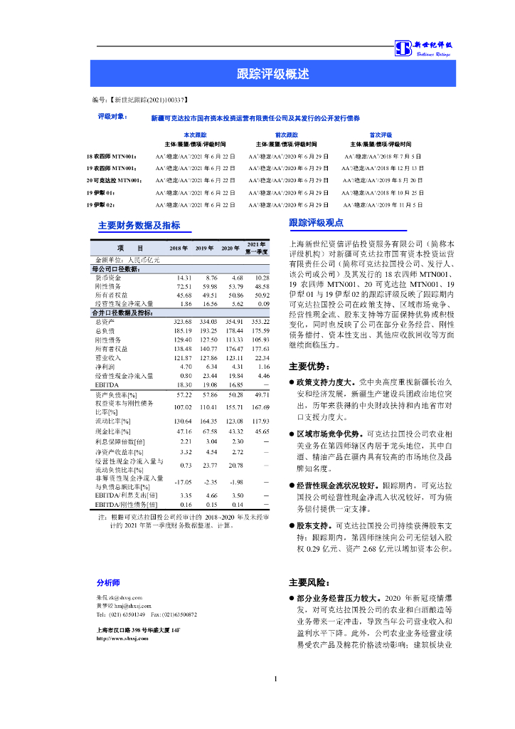 新世纪:新疆可克达拉市国有资本投资运营有限责任公司及其发行的公开发行债券跟踪评级报告.pdf