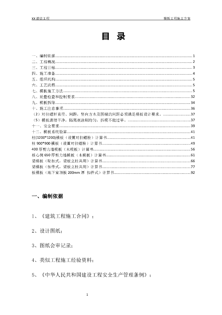 酒店工程框架-核心筒结构模板施工方案(94页,图文详细).doc