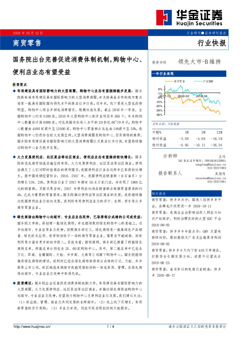 华金证券:商贸零售行业快报:国务院出台完善促进消费体制机制,购物中心、便利店业态有望受益.pdf