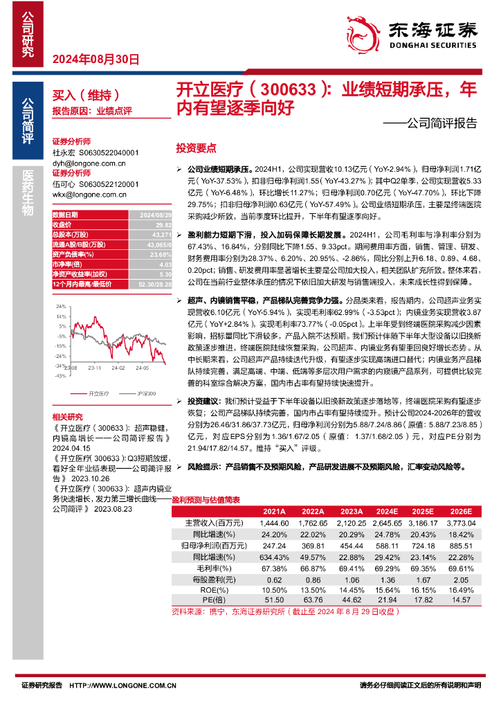 东海证券:开立医疗(300633)-公司简评报告:业绩短期承压,年内有望逐季向好.pdf