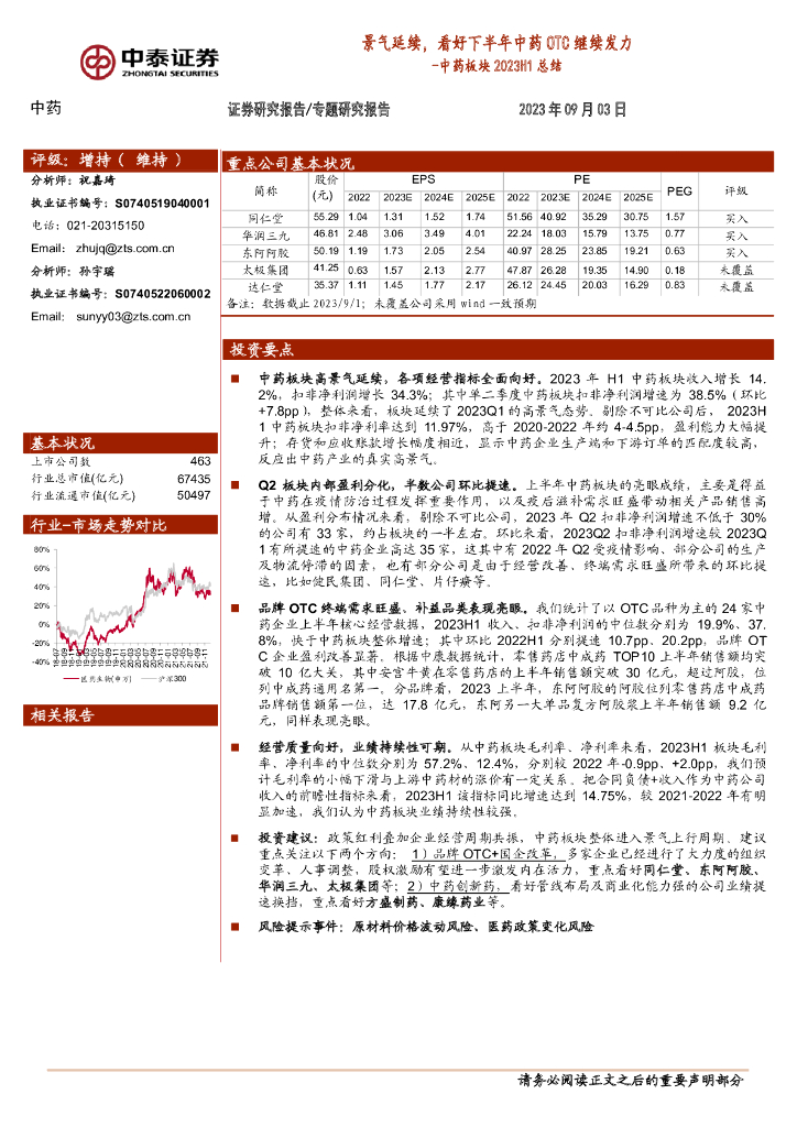 中泰证券:中药板块2023H1总结:景气延续,看好下半年中药OTC继续发力.pdf