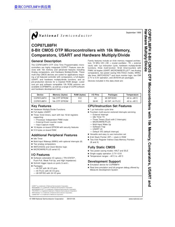 National semiconductor COP87L88FH 8-Bit CMOS OTP Microcontrollers 数据手册.pdf